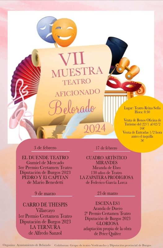 PROGRAMACIÓN CULTURAL FEBRERO 01/02/2024 - 29/02/2024 Llega la programación cultural de febrero con el inicio de la VII Muestra de Teatro, cine y el especial de Carnaval... para finalizar el mes y dar la bienvenida al siguiente "Las Marzas"