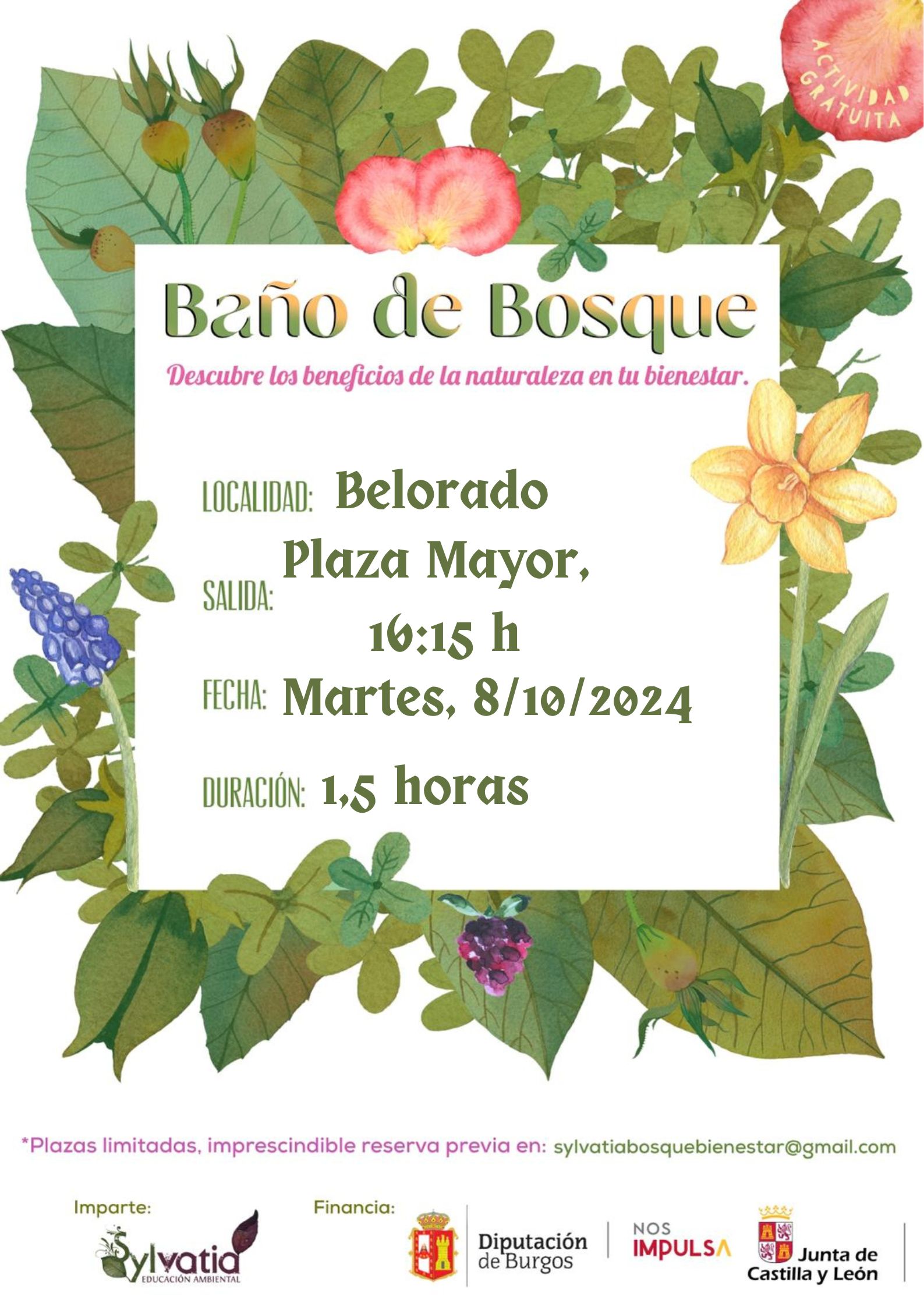 Rutas botánicas: Baño de bosque 08/10/2024 Comentario sobre el horario 16:15h. Baños de bosque Salida desde Plaza Mayor 16:15h.