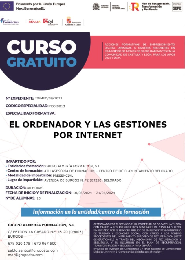 El ordenador y las gestiones por Internet Inicio 10 de junio Información en la entidad/centro de formación #Belorado