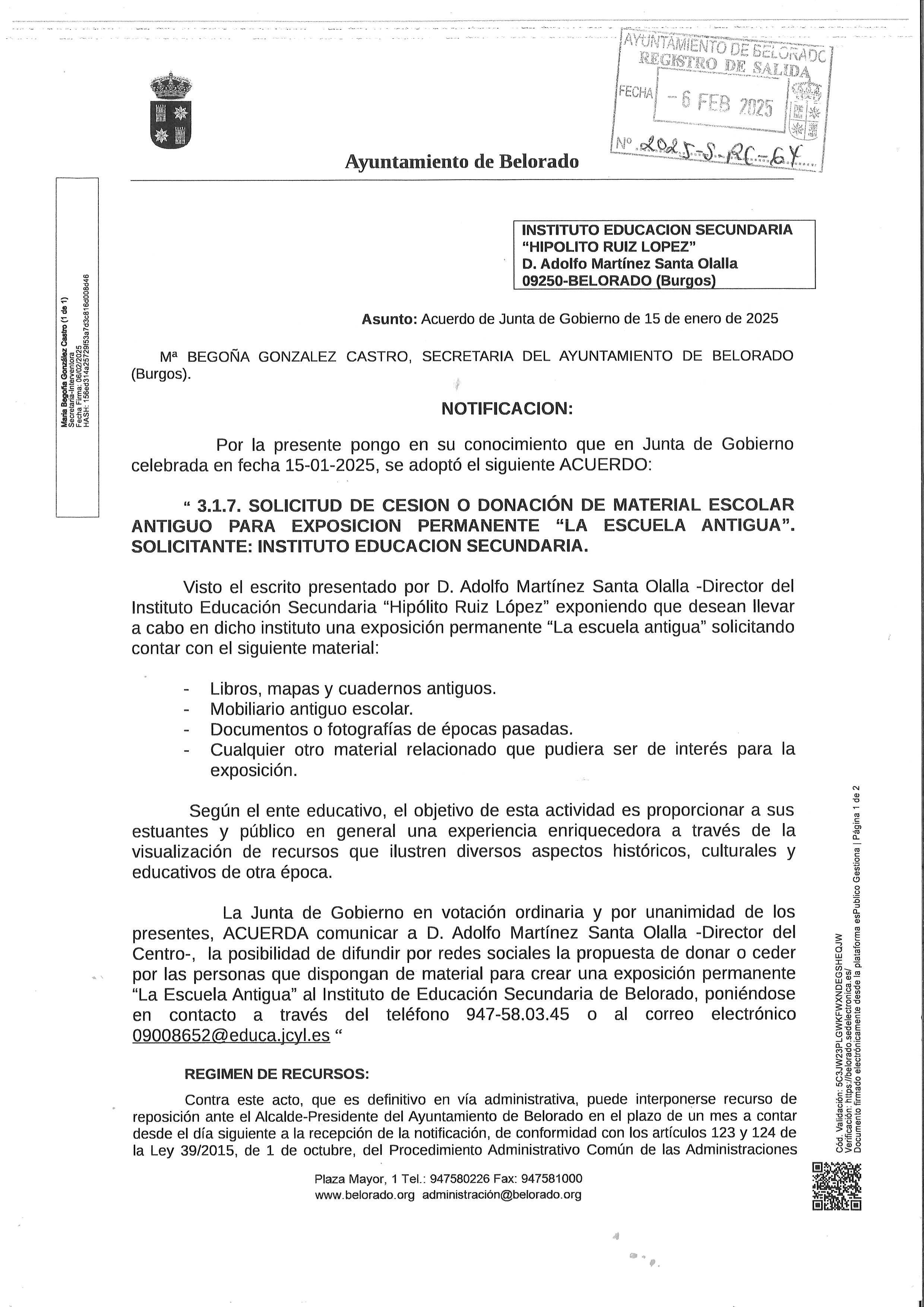 SOLICITUD DE CESIÓN O DONACIÓN DE MATERIAL ESCOLAR ANTIGUO PARA EXPOSICION